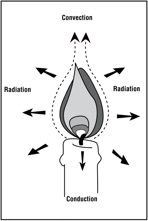 Regardless of what wax or wick a candle contains, they all look quite similar when burning: a multicolored flame in a distinct teardrop shape. That characteristic shape arises from convection. Since the highest temperature of the candle occurs near the bottom of the flame, this area has the least dense air. To fill the oxygen density gradient, the flame draws in cooler, denser air from below, creating an upward current that contours the teardrop flame.